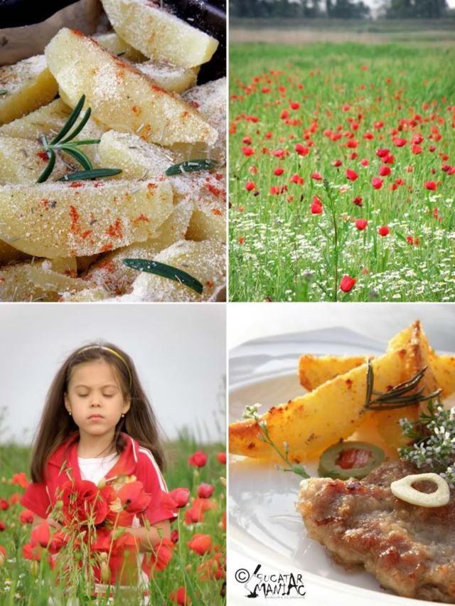 Intre 2-3 „sedinte foto“, intr-o zi insorita din saptamana trecuta, in timp ce am profitat de campul inflorit din spatele blocului, am aruncat in cuptor, niste cartofi noi, pentru care am sacrificat cu zgarcenie si o crenguta din rozmarinul de pe terasa. I-am servit ca si garnitura la ceva despre care am sa va povestesc intr-alta zi :P.