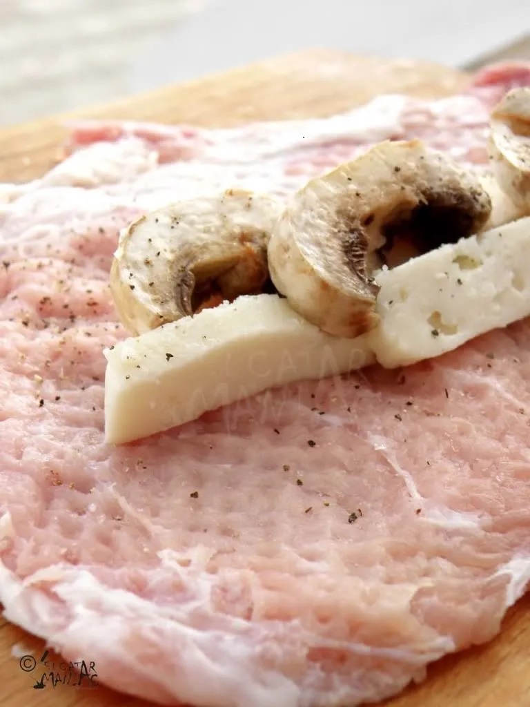 Rulou din cotlet cu ciuperci, ardei si mozzarella
