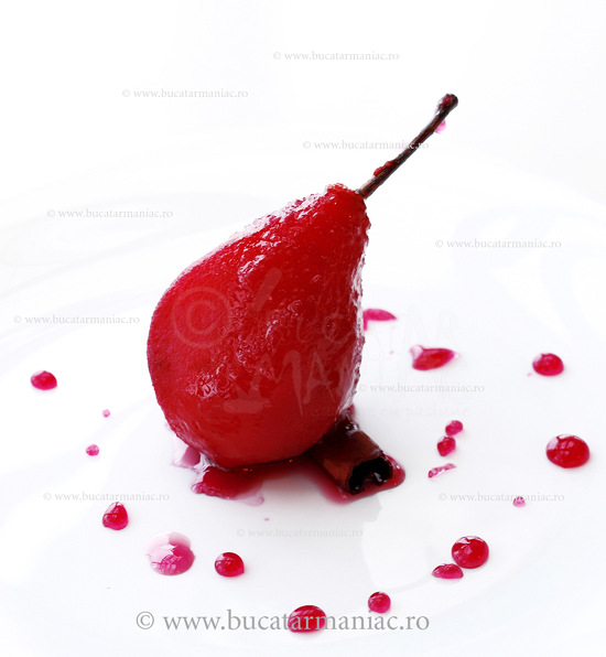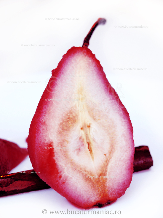 Frig, zapada, vant- vreme numai buna pentru fiert vin si de ce nu, pere in vin! Este un desert foarte usor de pregatit si foarte aspectuos. Vinul se poate condimenta dupa pofta fiecaruia, exact ca si la vinul fiert.