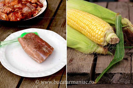 Pe aceeasi plita au urmat apoi inca doua bunatati, iar la final, am schimbat plita cu cea striata pentru a coace porumbul. Prumbul trebuie sa fie foarte crud. L-am lasat pe gratar ceva vreme (nu mai stiu cat) si l-am intors pe toate partile, pana s-a facut auriu si moale.