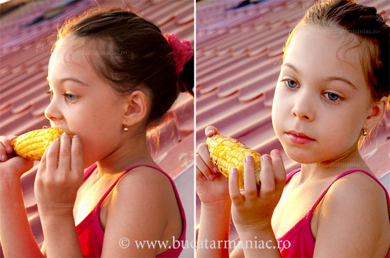 Astazi am sa va povestesc despre muschiul de vita (care de fapt a fost doar o bucata de vreo 300 de g, care mi-a ramas de la un biftec tartar pe care-l facusem in ziua respectiva si pe care am sa vi-l arat in zilele urmatoare) si despre porumbul copt. Am adaugat ca si garnitura o salata de sezon.
