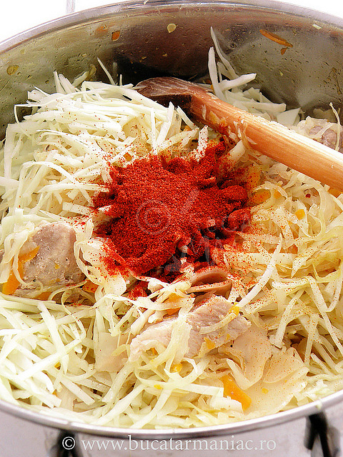 Am calit ceapa, ardeiul si morcovul taiate marunt in foarte putin ulei. Am adaugat carnea si am mai lasat cateva minute pana si-a schimbat culoarea. Punem afumatura si adaugam varza stoarsa bine si amestecam. Condimentam cu de toate! atentie la sare, pentru ca varza poate fi sarata. La fel si afumatura. Punem si vreo 2 pahare cu apa, cat sa aiba inc e sa fiarba si lasam la fiert la foc mic, cu capacul pe o parte. Eu am fiert-o aproximativ 2 ore, dar asta depinde de cat de usor se fierbe varza. Gustati si aflati! Cand varza este moale, mancarea este gata. Eu l-am pus si la cuptor 15 minute.Pofta buna!