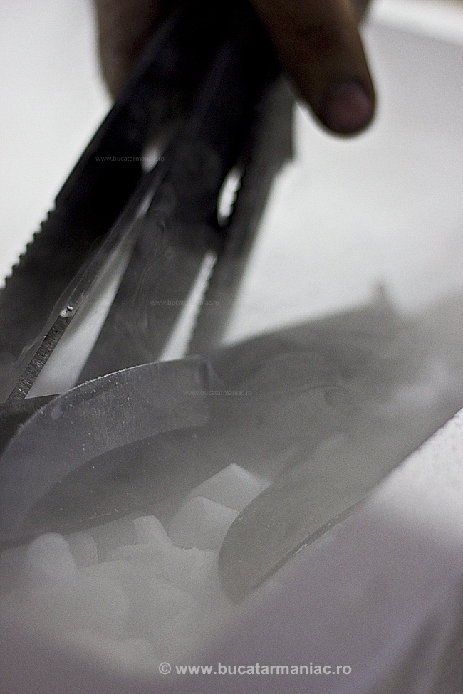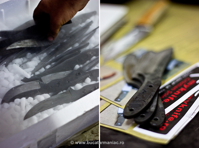Cine ma cunoaste stie ca nu sunt foarte entuziasmat de nimic. Is mai banatan molcom, asa, dar nu stiti voi ce se petrece in sufletul meu, mai ales cand ma roade curiozitatea! Asa ca m-am grabit sa raspund invitatiei. Dupa ce-am fost zilele trecute in casa unui alchimist celebru in Praga, astazi m-am nimerit in casa unui fierar modern- tot cam acelasi lucru! Si am picat fix cand Cristian a pus niste lame la copt, asa la vreo 1800 de grade Celsius. Intre timp alte lame se raceau in gheata carbonica la -80 de grade Celsius. Ce mai! Un adevarat spectacol vizual!