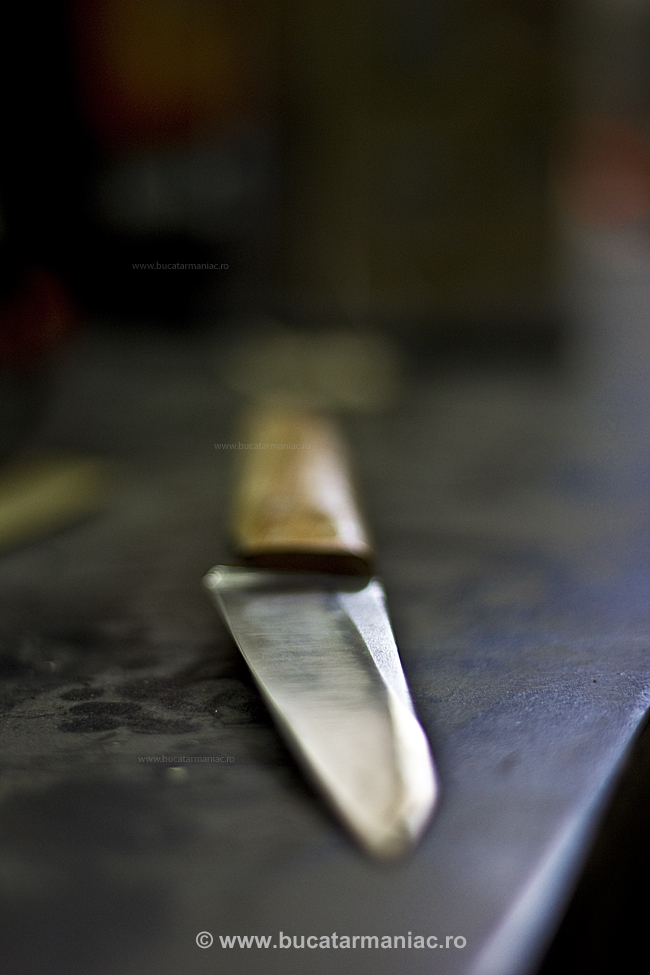 Trebuie sa va mai spun ca, la fel cum eu am inceput sa gatesc, si Cristian a invatat sa faca cutite, din pura pasiune, foarte multi ani doar pentru el insusi, si abia recent pentru a le vinde. Cred ca asta e cea mai grea cale de a invata ceva, atunci cand nu ai un maestru si esti nevoit sa te lovesti de propriile greseli.