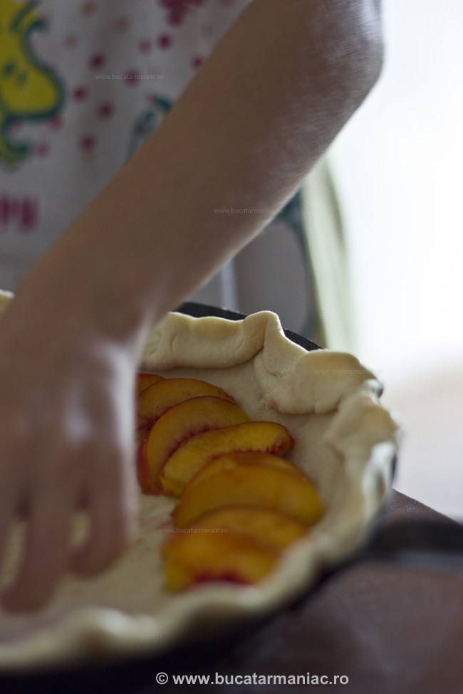 Va amintiti tarta cu prune de saptamana trecuta? A fost atat de buna incat a trebuit neaparat sa o repetam, de data asta si cu nectarine. Sigur ca si de data asta am avut ajutoare de nadejde, asa cum vedeti in imaginile de mai jos. A iesit foarte buna si cu nectarine si cu siguranta o vom repeta si cu alte fructe. Va reamintesc reteta: