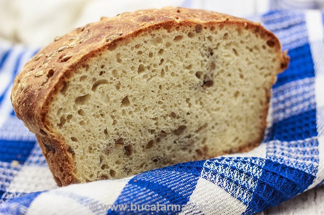 Aceasta este una din retelele pe care le folosesc cel mai des atunci cand fac aluaturi dospite simple. Iese la fel de bine de fiecare data. De data asta am facut paine cu seminte. A iesit foarte pufoasa si gustoasa. Voi puteti folosi ce seminte vreti, sau daca vreti puteti sa nu le puneti deloc in aluat.