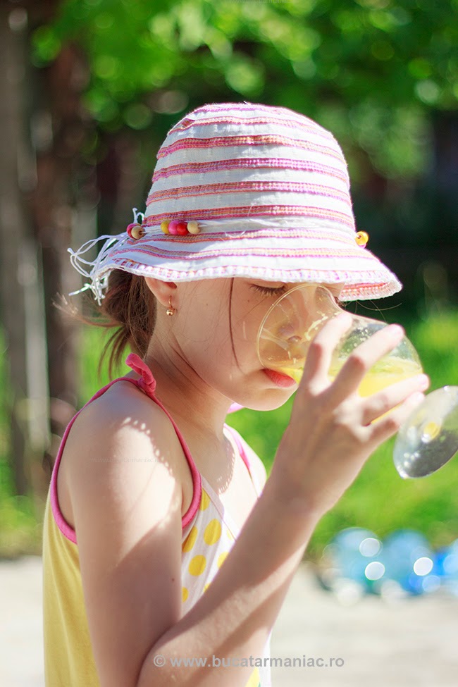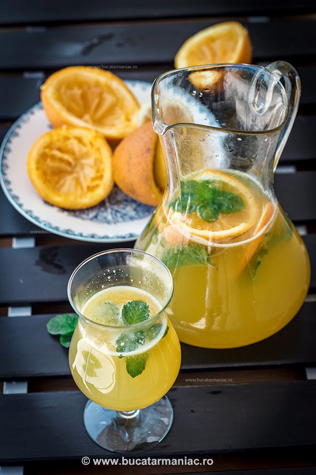 Oranjada , de fapt e un fel de limonada, dar cu portocale. Eu am indraznit sa adaug si o lamaie, dar asta doar pentru ca portocalele mele erau prea dulci. Voi puteti sa puneti doar portocale.