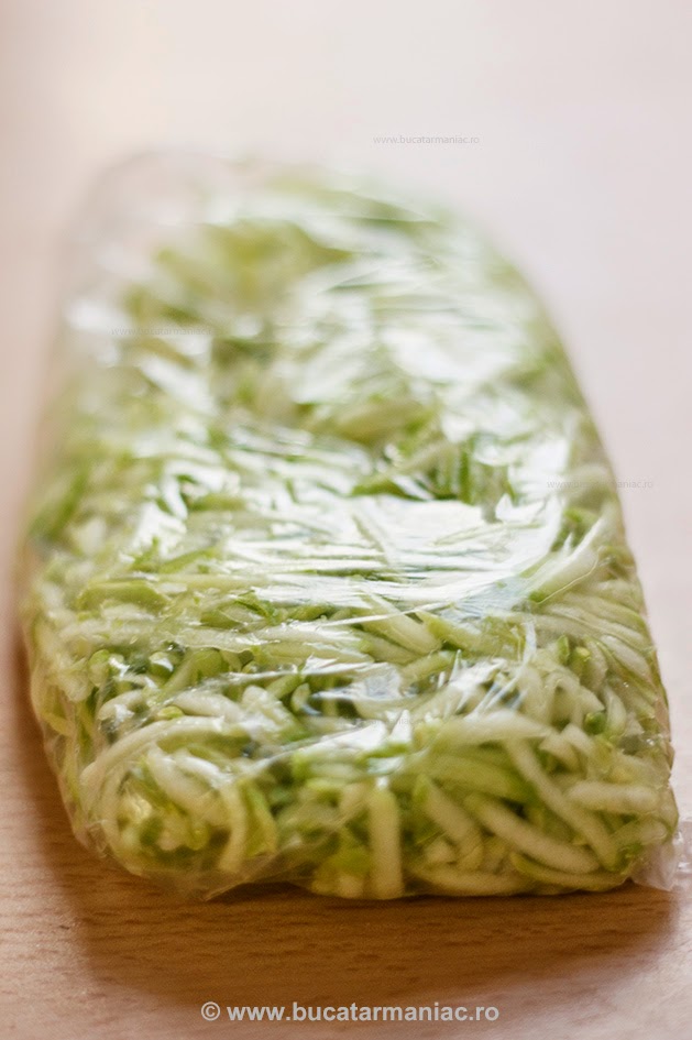 Cum fac eu? Pai nu cumpar special dovlecel ca sa il congelez, pentru ca nu am nevoie de cantitati industriale, dar daca am 1-2 dovlecei in plus, il razuiesc, ii pun intr-o punga, si apoi ii pun la congelator. Nu este nevoie sa ii curatati de coaja atunci cand sunt foarte mici, pentru ca ea este foarte frgeda oricum. Trebuie doar sa ii spalati bine si sa indepartate cele doua capete.