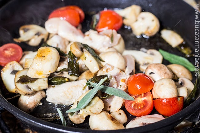 Intr-o tigaie, punem putin ulei, in care adaugam frunzele de salvie. Le prajim 1 minut, pana cand devin crocante. In acest timp ele isi vor pierde mare parte din gustul puternic, pastrand doar o aroma placuta.