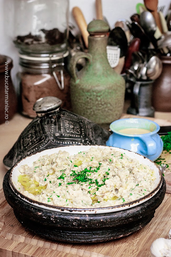 *Tahini este o pasta de susan care se poate prepara si acasa. Gasiti reteta aici. Ea se mai foloseste si la Hummus.