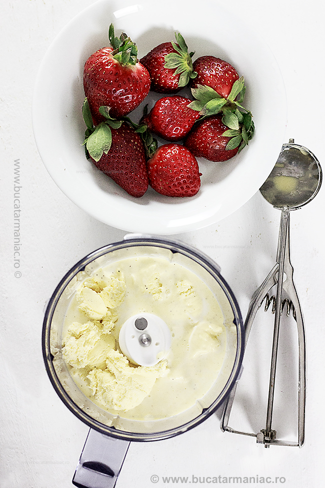 Hmmm, eu inghetata o bag asa, ca na, nu ma pot abtine. Si fac shake cu capsune congelate si lapte 😀 Cred totusi ca varianta ta e mai cremoasa <3