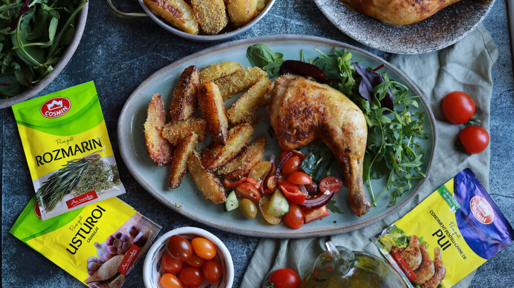 Cum fac un prânz gustos și sănătos cu pulpe rumenite și cartofi crocanți, toate în aceeași tavă, la cuptor? Simplu!
