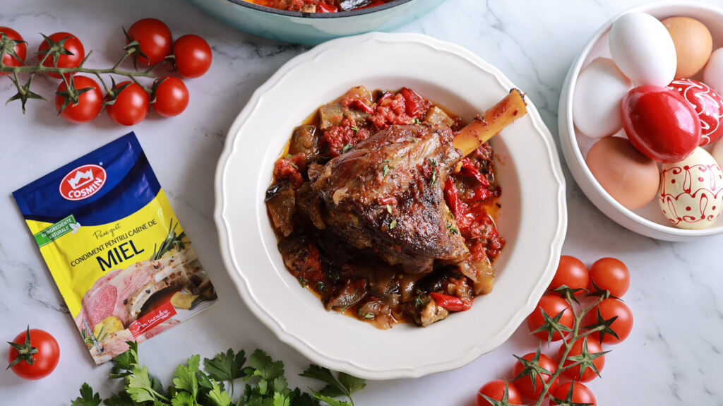 Mielul cu vinete, roșii și ardei la cuptor în stil turcesc este una dintre cele mai aromate și simple rețete pe care le poți prepara pentru masa de Paște sau pentru un prânz special. Gătit lent, într-un singur vas, acest preparat combină perfect carnea fragedă de miel cu legume coapte și un sos bogat de roșii.