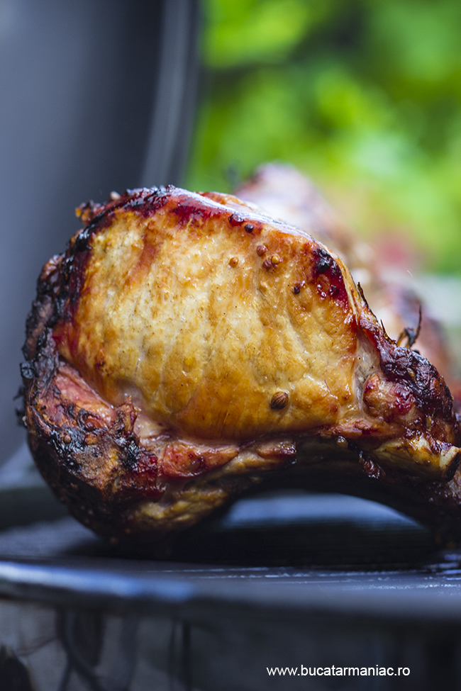 Cum am facut? Cu o seara inainte am pregatit o marinada din toate ingredientele de mai sus. Nu trebuie sa faceti altceva decat sa le amestecati si sa le puneti peste carne. Aveti grija ca aceasta sa fie bine unsa si acoperita cu marinada. Acoperiti-o cu o folie alimentara si lasati-o la frigider pana a doua zi. Este bine sa stea la marinat macar 12 ore.