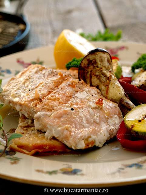 Mai jos, o reteta gatita asa cum v-am povetit mai sus: somon cu legume la gratar.