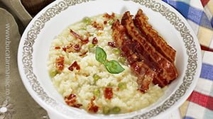 Risotto cu mazare, pancetta si busuioc